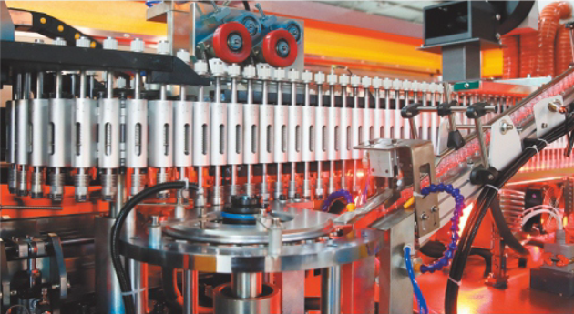 采用伺服電機(jī)驅(qū)動(dòng)環(huán)形鏈條; 采用伺服單通道上胚; 采用鋁合金制造的高壓吹氣組合閥,可有氣體回收裝置,減少能源消耗,保護(hù)環(huán)境; 采用PID恒定控制烤箱瓶胚加熱和風(fēng)機(jī)排風(fēng)。